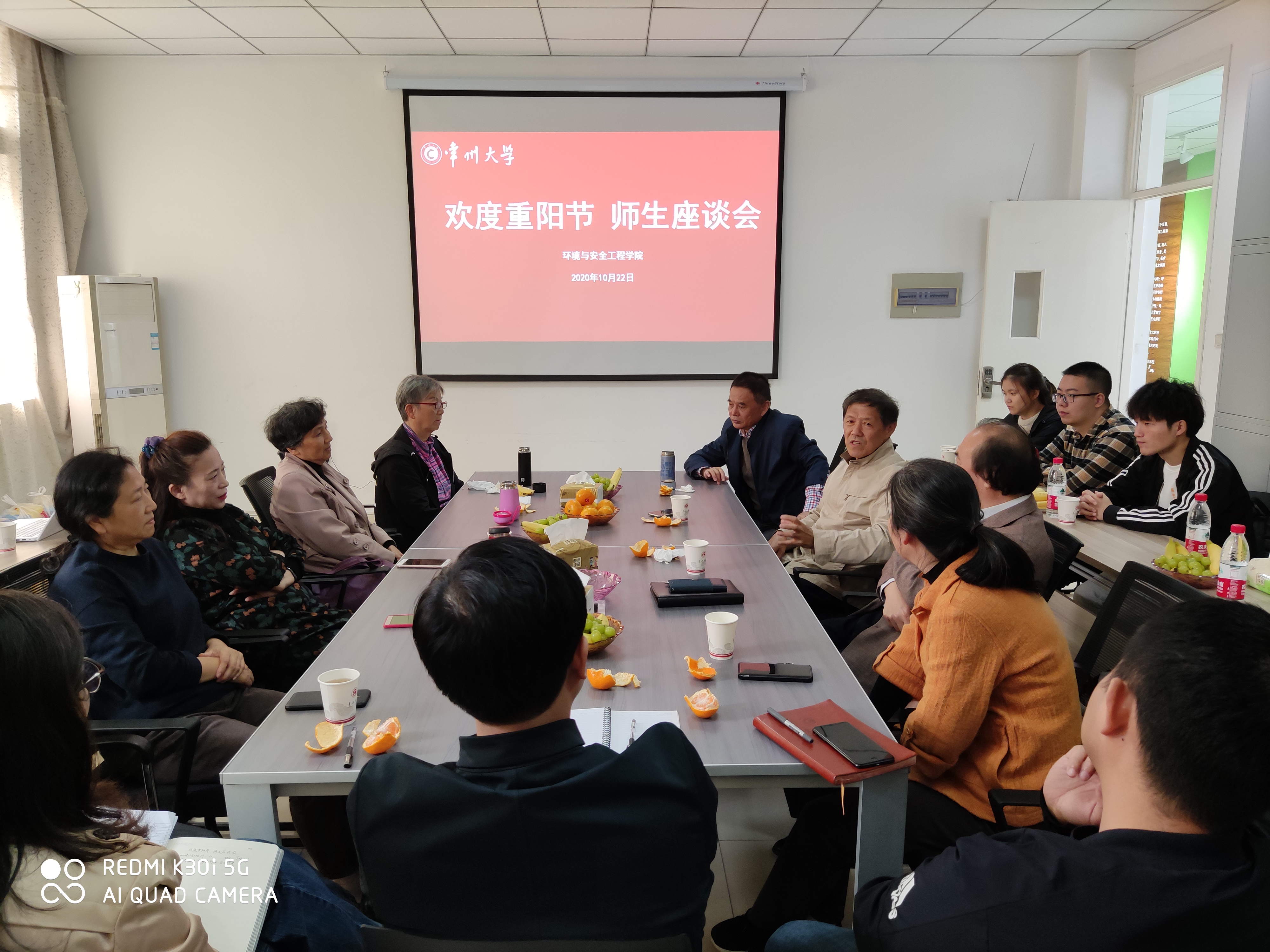 10月22日上午,环境与安全工程学院欢庆重阳节师生座谈会在明行楼327会议室举行。离退休老同志、学院党政领导、新引进青年教师、困难学生代表参加座谈会,会议由党委书记薛荣主持。